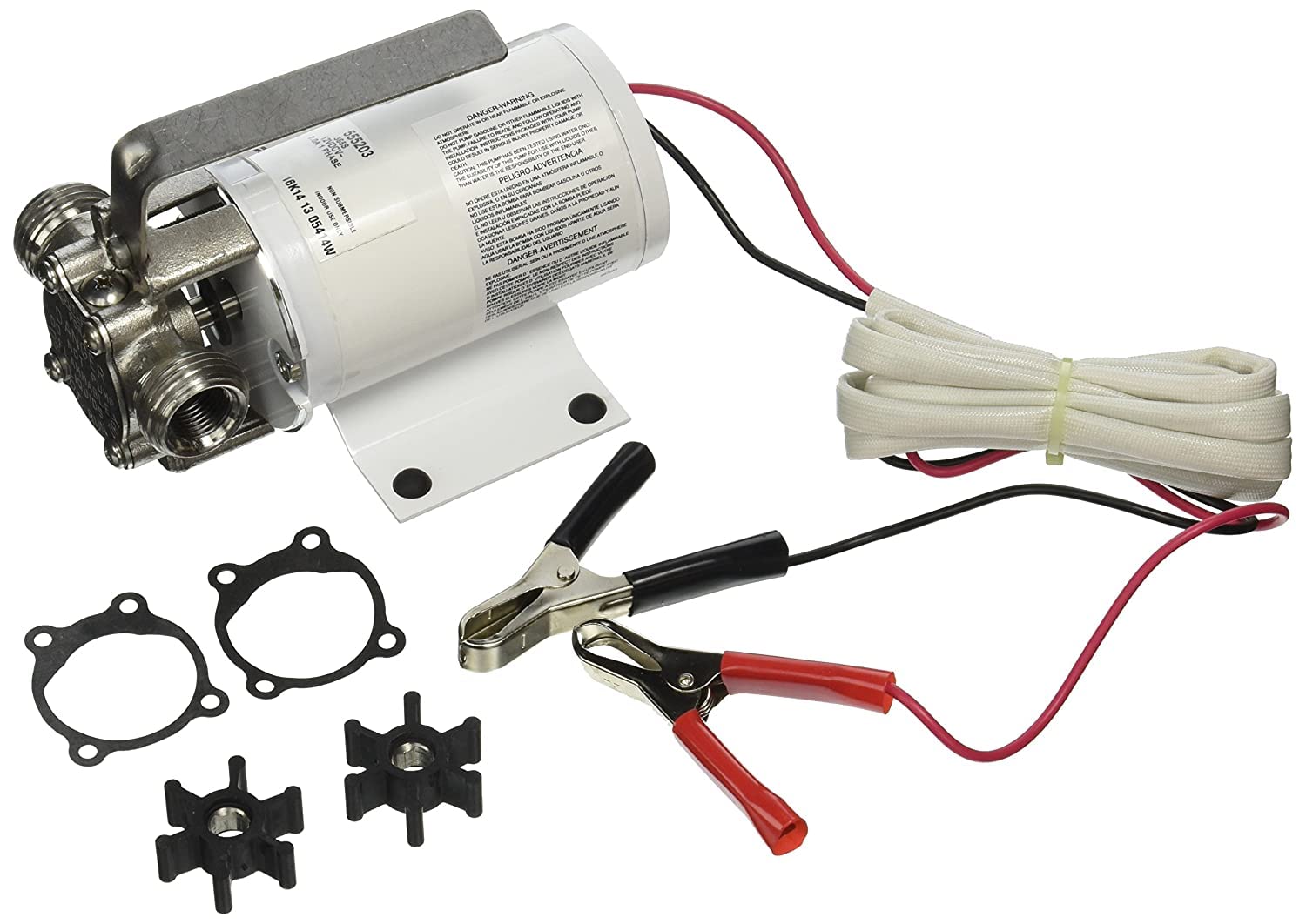 - PORTABLE UTILITY PUMP: 12 Volt DC stainless steel pump is ideal for water transfer or removal in and around homes or boats; this pump is a non-submersible pump with 6-ft. leads and battery clips