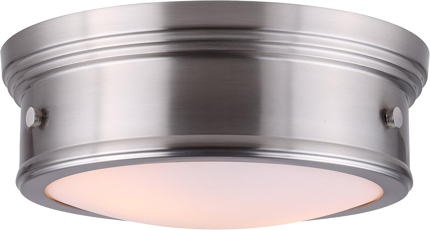 Canarm ltd IFM624A13BN style boku BN 2 bulb 13 inch flush mount brushed nickel with flat Opal glass - the boku BN Collection features a brushed nickel finish with a sleek, round, metallic design accented at the top with concentric, stepped rings resembling crown molding. The rounded, flat Opal glass shade softens the look. Boku BN provides bright illumination and is perfect for kitchen and dining areas. The styling complements without over powering your decor. Easy connect push-in connection system makes installation easier, faster and safer. This boku flush mount uses 2 60W type a bulbs (not included). canarm has a long and successful history of supplying lighting and ceiling fans. They work diligently to create a comprehensive selection of styles and designs as well as maintaining high standards of product quality and value.