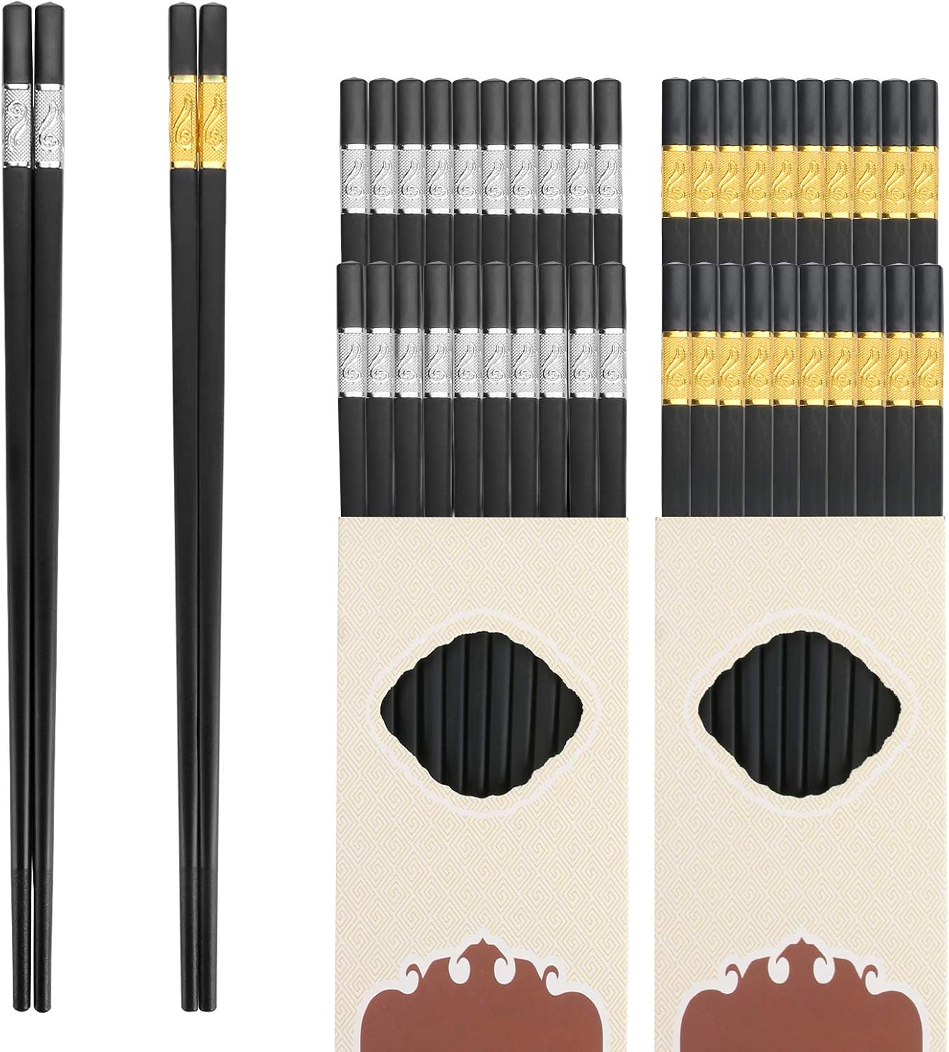Buу 1 gеt 1 Laelr 20 Pairs Fiberglass Alloy Chopsticks, Classic Style Reusable Chopsticks Set Chinese Japanese Korea Chop Sticks Dishwasher Safe, Non-Slip, 10 1/2 inches Gold and Silver