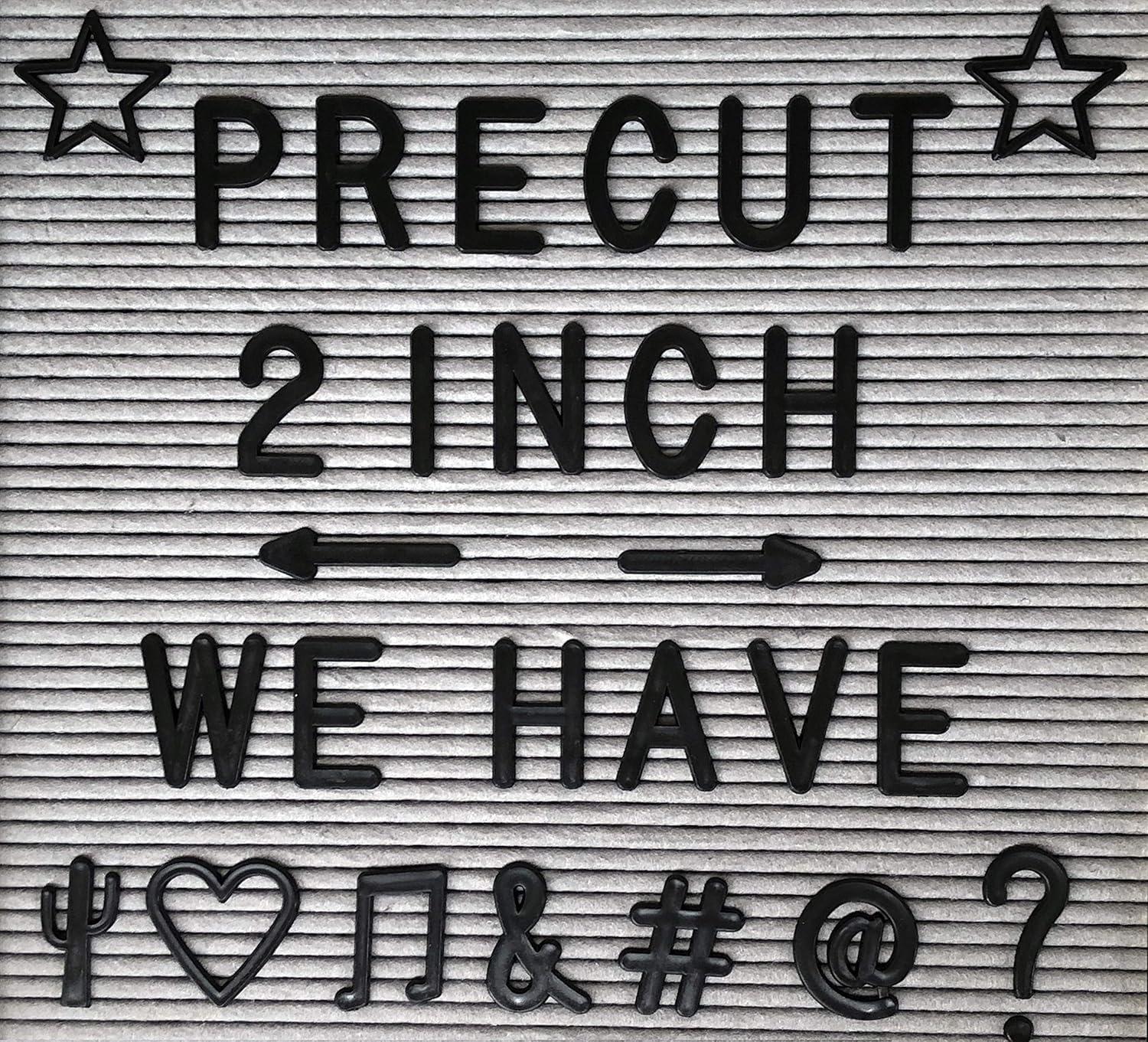 - US SELLER / GUARANTEED QUALITY. Your 2" PRE-CUT BLACK letters for letter boards is personally inspected and packed by our family here in the USA to ensure your 100% satisfaction. Ships and Services by Amazon with Prime available & A-Z money back guarantee.