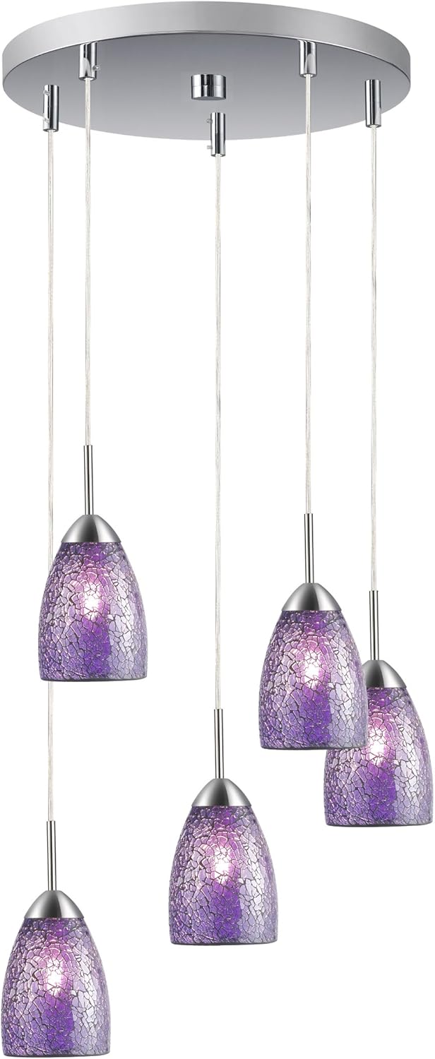 Professional reviews from industry experts Woodbridge Lighting 13225STN-M20PUR Venezia 5-Light 5-Port Mini Pendant Cluster, 13-Inch by 84-Inch Maximum, Satin Nickel